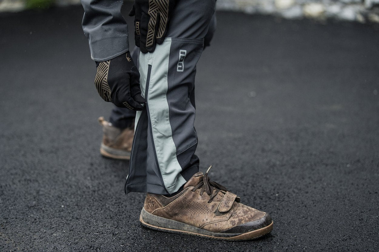 ION's Shelter Pants 4W Softshell men are highly flexible and specifically for mountain biking in unstable weather conditions. 4way_Stretch fabric combined with reinforced panels at lower legs and seat area provides freedom of movement paired with durability. Triple Stitched seams further increase sturdiness in all stressed areas. The special DWR (Durable Water Repellency) treatment and the coating of the non-flex material make these pants comfortable and easy to clean on those wet days in the dirt. Two zip front pockets, the right one with Phone_Pouch, a neoprene pocket to protect your mobile device from light impacts. Adjustable waistband for an individual fit. Zipped ventilation slots on the outer thigh.