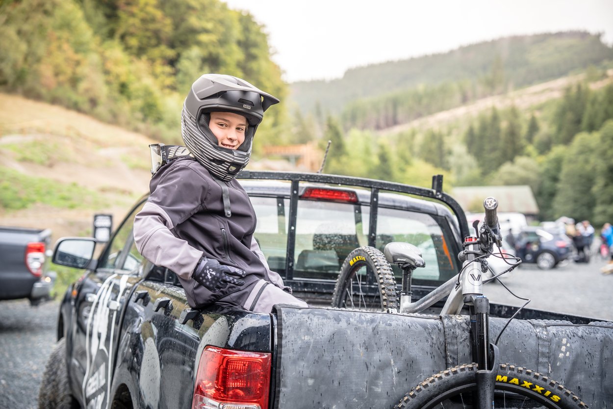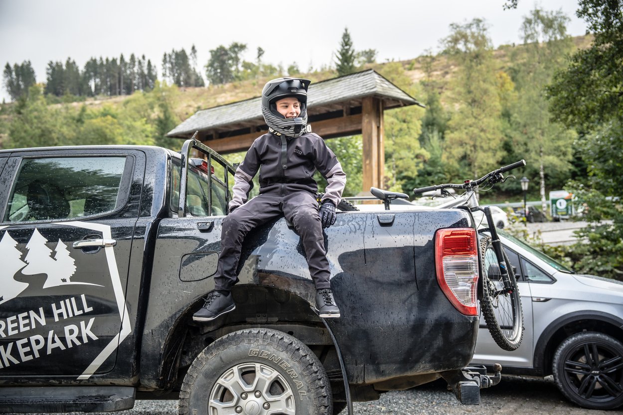 Gear up for all conditions with our wide Shelter range. The 2L softshell MTB jacket for kids is your ultralight weather shield with durable, stretchy woven nylon fabric and an additional fleece backing to push through lower temperatures. The membrane is woven directly into the outer shell to keep it flexible and light. With an eye on performance and functionality, we've added the sustainable C0 DWR finish, applied throughout our Shelter range, to repel water. The jacket has elastic hems and a sleek_hood (under helmet) design to make sure any bad weather conditions are kept outside. Pre-shaped sleeves and a bike-specific cut provide a functional fit for ride-position comfort and space for body armor when needed.