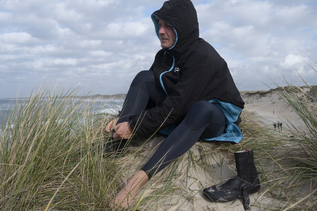 The Storm Coat is your mobile changing robe and comfortable coat in one. It shelters you against rain and storm while providing good breathability. Taped seams and a durable zipper make the coat sturdy enough for rough conditions. The easy-grip zipper makes getting in and out easy, even with cold hands. On the inside, a fluffy teddy fleece increases comfort to the max and cares for extra warmth in between sessions.