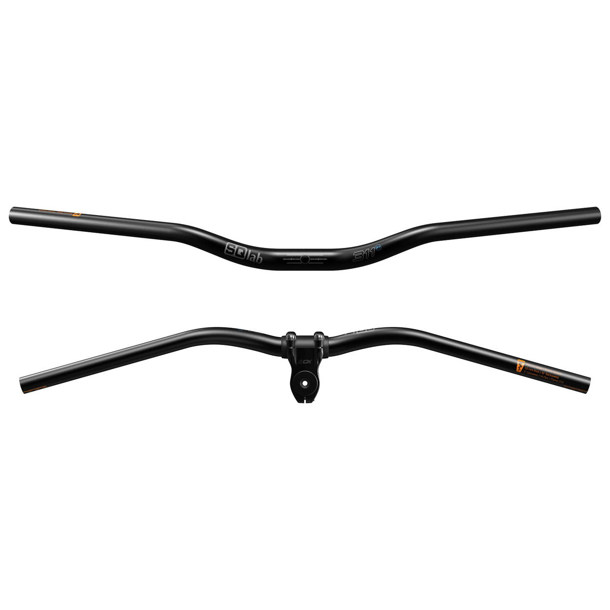 27.0 mm clamping area and including a shim for 31.8 stems. The smaller diameter increases the bar‘s flex properties. The shim - available in both plastic or aluminium – ensures a good fit of the bar in the stem and reduces the stress raisers at the edge of the stem. This little trick increases the bar’s durability and overall strength. The 16° backsweep provides a natural transition from lower arm to the hand. This is especially important with handlebars of width greater than 700 mm. The 10mm forward reach almost make up for the reduced reach which the higher sweep provides. The 5° upsweep bring the elbows into a perfect position for a dynamic riding style. Only the best in materials are used. Careful and precise bending and manufacturing processes make the SQlab 311 one of the most advanced handlebars on the market. The handlebar may not be used at bikeparks and for downhill-bikes. The backsweep largely stems from the motocross arena where a similar backsweep and upsweep is custom. Only if the ergonomics are 100% perfect, you can ride at maximum pace and your body endure the associated high strain in the long run. Also available in the conventional 31.8 clamping diameter. The pictured stem is not included in the scope of delivery.